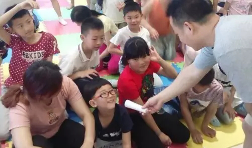 在歡樂的氣氛中,哈哈老爸給孩子們講了“大衛(wèi)惹麻煩”,一個(gè)淘氣的美國(guó)孩子惹麻煩,在麻煩中學(xué)會(huì)懂規(guī)矩,學(xué)會(huì)自立、學(xué)會(huì)愛的故事。