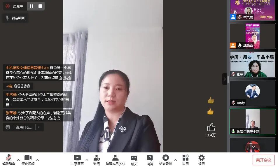 木蘭會(huì)聯(lián)席主席、中汽聯(lián)秘書長郭霽嘉作了總結(jié)發(fā)言。郭秘書長認(rèn)為木蘭是社會(huì)進(jìn)步的重要力量。國家的發(fā)展、民族的興旺、社會(huì)的進(jìn)步,離不開“她力量”的推動(dòng)。在當(dāng)前我們面對(duì)的舉世矚目的抗疫阻擊戰(zhàn)中,更少不了木蘭這群“鏗鏘玫瑰”的美麗身影,她們用實(shí)際行動(dòng),在抗疫戰(zhàn)線上樹起了一道靚麗的風(fēng)景線,她們用青春和汗水,譜寫了社會(huì)主義新時(shí)代的贊歌,她們是無愧于國家、無愧于人民的“巾幗英雄”。新時(shí)代木蘭,更是要以楷模之光照亮前行之路,看齊“巾幗英雄”筑夢(mèng)前行,感悟她們“俯首甘為孺子牛”的奉獻(xiàn)精神,要充分發(fā)揚(yáng)“甘做嫁衣、甘為綠葉”的奉獻(xiàn)精神書寫無愧于時(shí)代、無愧于人民、無愧于歷史的精彩答卷,共同書寫共和國的千秋偉業(yè)。