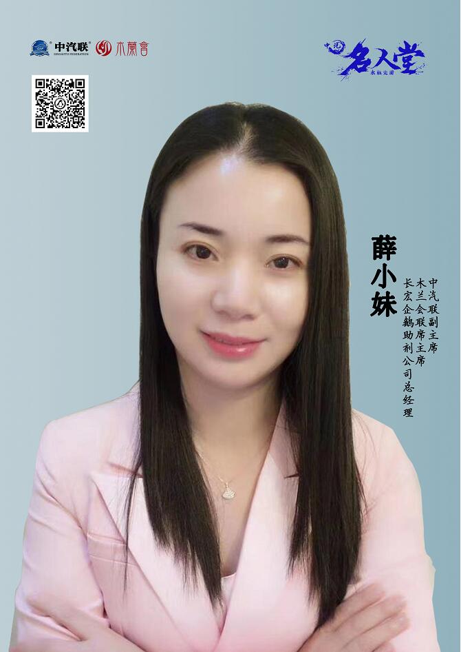 薛小妹 北京長(zhǎng)宏企鵝助劑有限公司總經(jīng)理、北京新陣線聯(lián)盟創(chuàng)始人、北京匯聚縱橫商會(huì)會(huì)長(zhǎng)、福州商會(huì)理事、中國(guó)百杰創(chuàng)業(yè)女性理事、CCTV中國(guó)品牌與欄目組戰(zhàn)略合作伙伴、中國(guó)探險(xiǎn)協(xié)會(huì)中國(guó)企業(yè)家俱樂(lè)部副會(huì)長(zhǎng)、中國(guó)探險(xiǎn)協(xié)會(huì)自駕游攝影專委會(huì)聯(lián)合發(fā)起人、聯(lián)合國(guó)支持基金會(huì)大中華區(qū)運(yùn)營(yíng)部副總監(jiān)、中汽聯(lián)副主席、木蘭會(huì) 聯(lián)席主席、汽車行業(yè)全國(guó)知名企業(yè)家,她作為汽車領(lǐng)域商界女性的一面旗幟,獲得了多項(xiàng)榮譽(yù)和社會(huì)認(rèn)可,是知名的全國(guó)木蘭紅旗手標(biāo)兵,作為全國(guó)知名企業(yè)家,是耕植汽車領(lǐng)域成功轉(zhuǎn)型優(yōu)秀企業(yè)創(chuàng)業(yè)者,她是新時(shí)代的中國(guó)木蘭領(lǐng)袖。