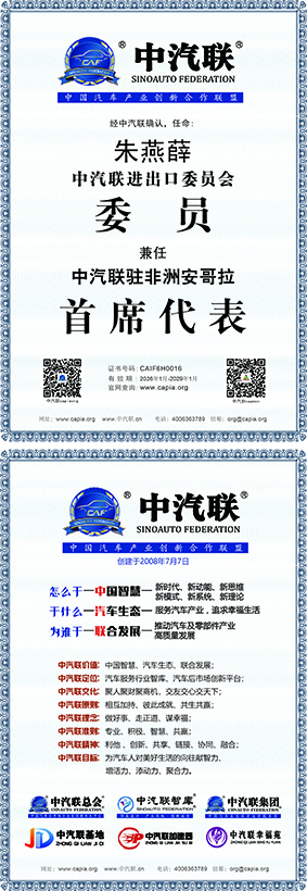 中汽聯(lián)進(jìn)出口委員會委員兼駐非洲安哥拉首席代表:朱燕薛